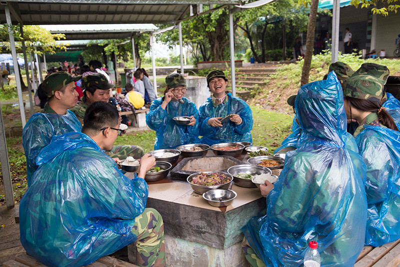 中午的午餐,是實行的野炊。盡管雨還是一直在下,但群發的小伙伴們熱情并沒有減低。